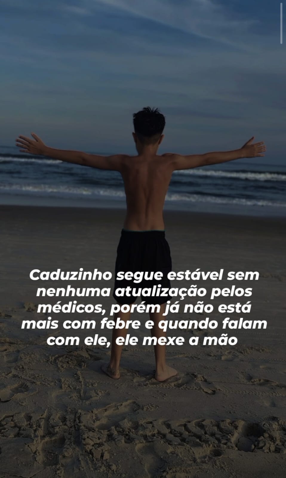 Cadu segue em processo de despertar, sem febre e com sedação sendo reduzida gradualmente