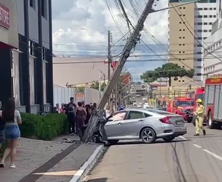 Pinheiro MachadoFord Ka fura a preferência, atinge Civic e colisão termina com poste derrubado na área central de Guarapuava