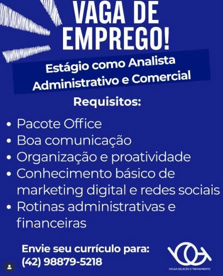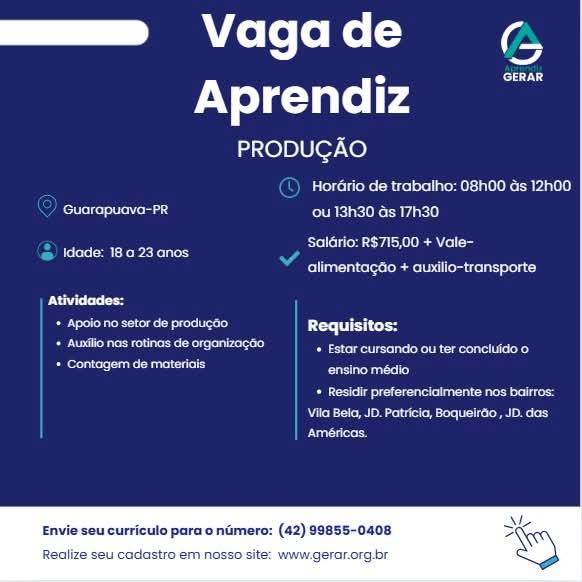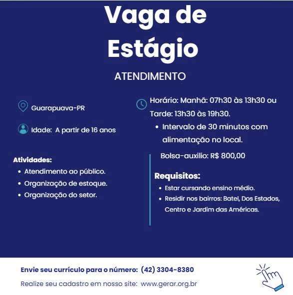 Diversas vagas de emprego e estágio em Guarapuava nesta terça (7)