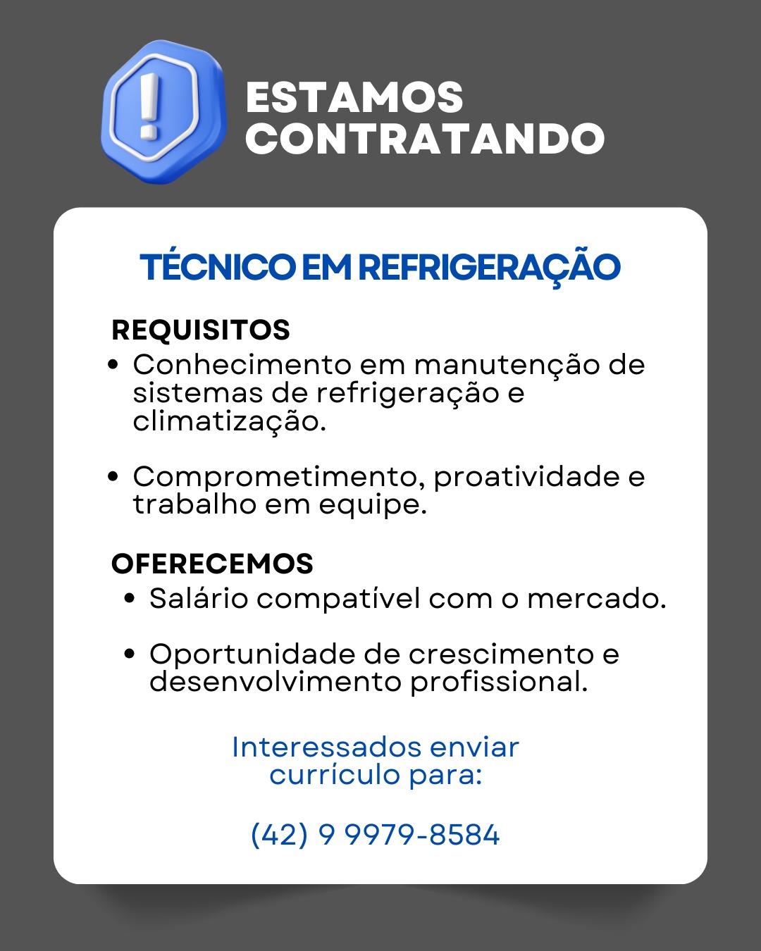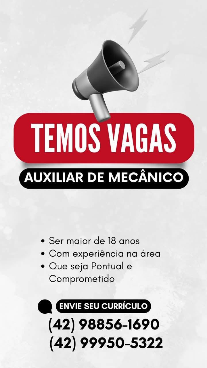 Os interessados devem comparecer à Agência do Trabalhador, localizada na Rua XV de Novembro, nº 7960 – Centro. Mais informações pelo telefone (42) 3622-6997.