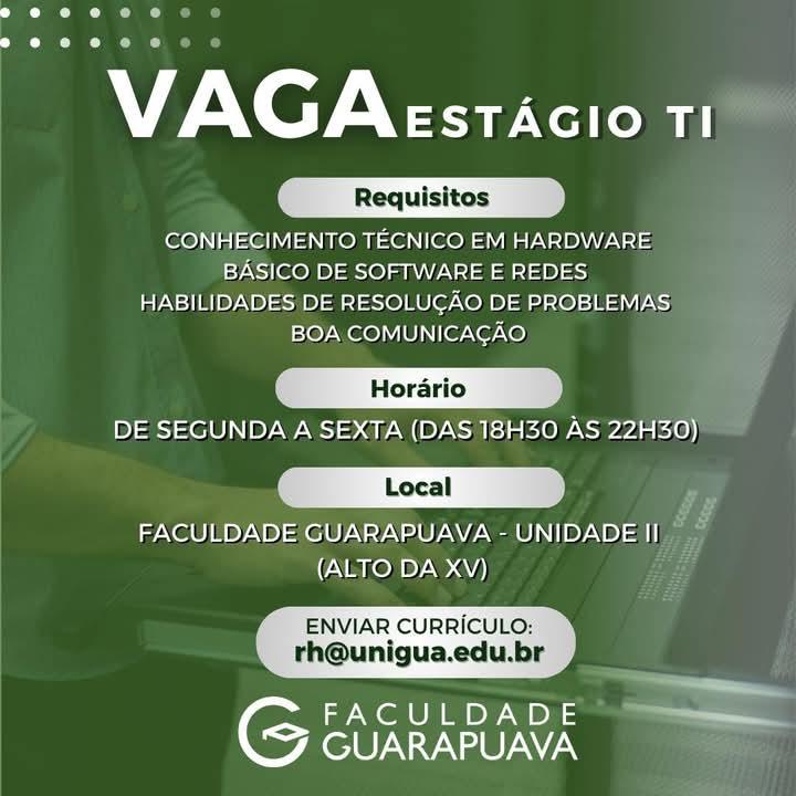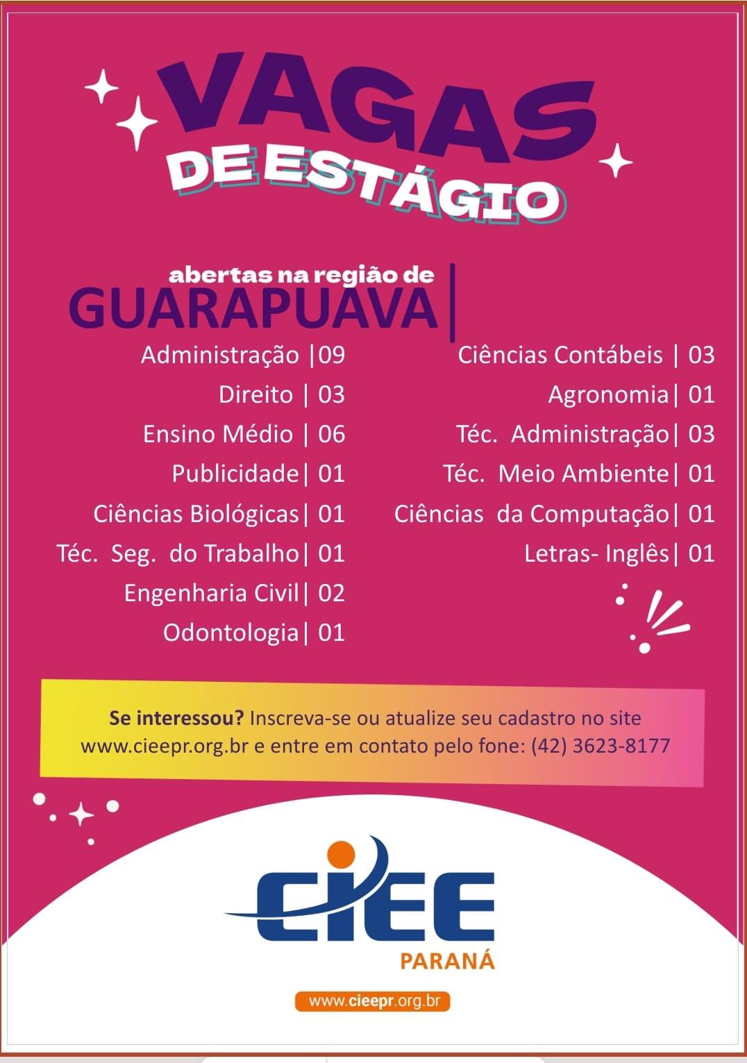 Mais de 100 vagas de emprego e estágio disponíveis em Guarapuava