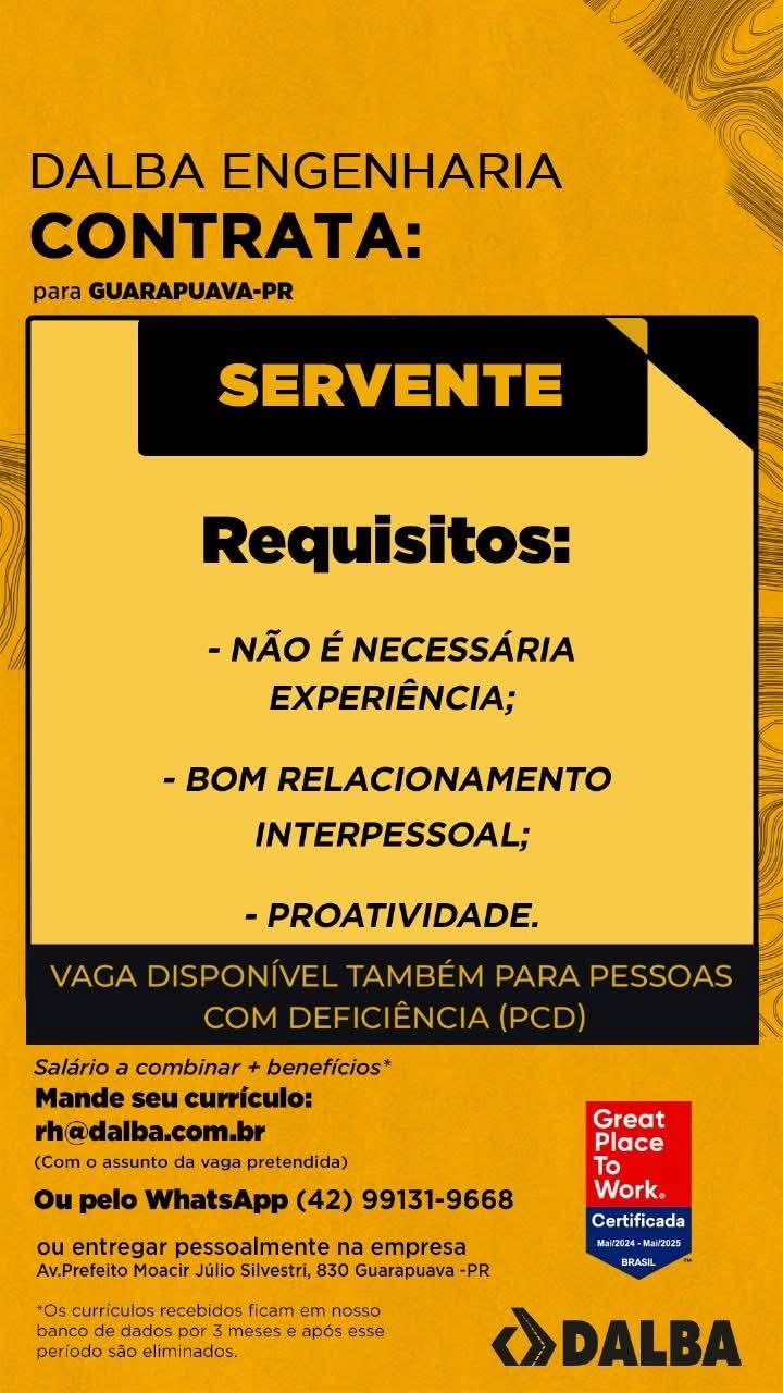 #Guarapuava #EmpregoGuarapuava #VagasDeEmprego #AgenciaDoTrabalhador #Trabalho #Oportunidades #RH #MercadoDeTrabalho #VagasDisponíveis #PCD #EmpregoHoje