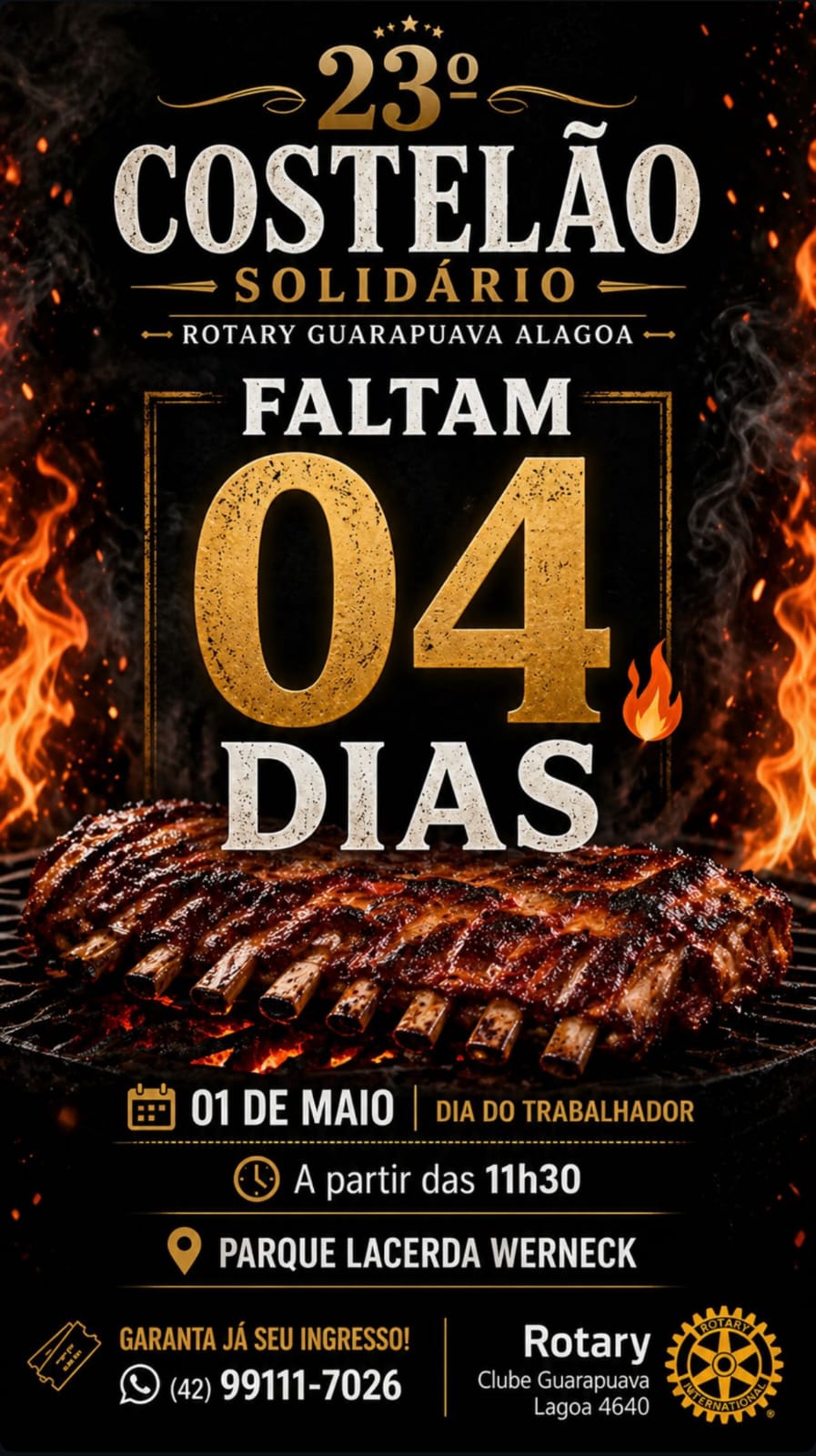 SolidariedadeCostelão do Rotary 2026 espera de 800 a 1.000 pessoas e terá arrecadação revertida para instituições sociais de Guarapuava