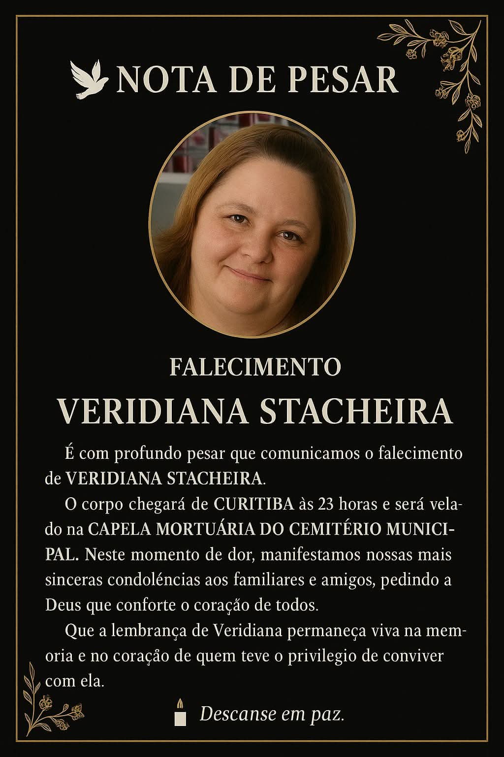 Últimas homenagensLuto: Veridiana Stacheira não resiste a cirurgia no coração