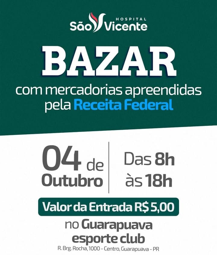 No GECBazar de produtos apreendidos pela Receita Federal acontece em prol do Hospital São Vicente neste sábado (4)