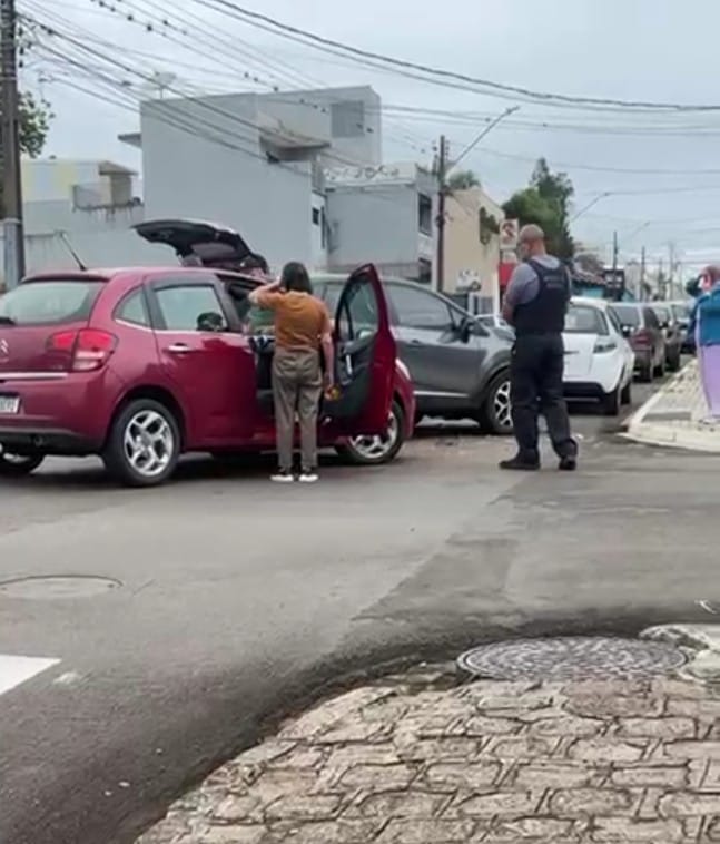 Mulher feridaVW/Up e caminhão colidem no cruzamento das ruas Marechal Floriano Peixoto e Pedro Alves