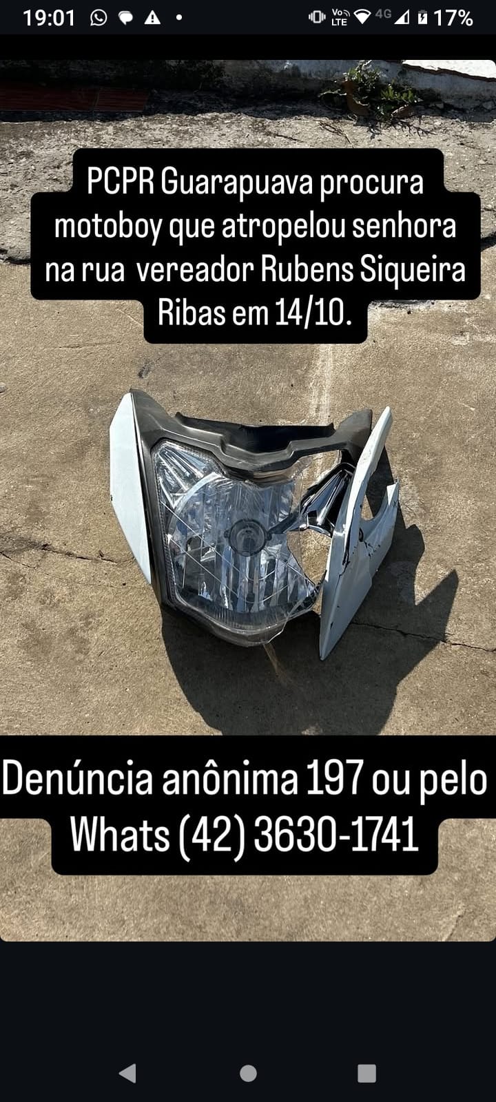 CompartilhePolícia Civil de Guarapuava procura motoboy que atropelou senhora na Vereador Rubens Siqueira Ribas