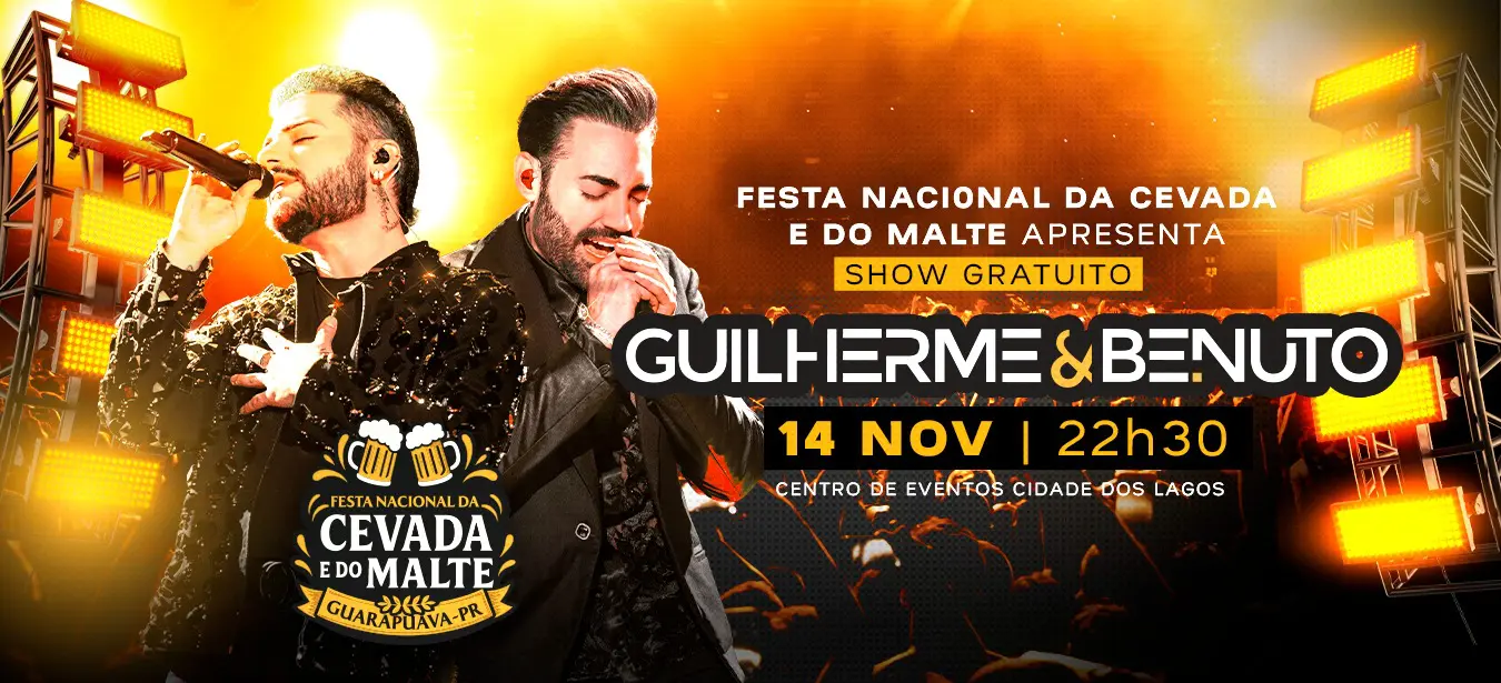 Dia 14 novembro Show nacional de Guilherme e Benuto será destaque na Festa da Cevada 2025