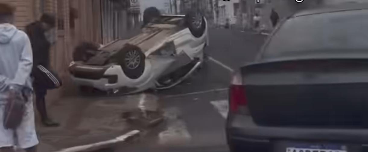 Veículo capota no cruzamento das ruas Senador Pinheiro Machado e Getúlio Vargas