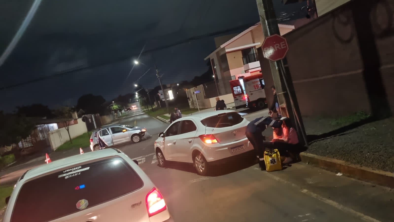 Um acidente foi registrado durante a noite na esquina das ruas São Paulo e Rio de Janeiro, no bairro dos Estados, em Guarapuava.